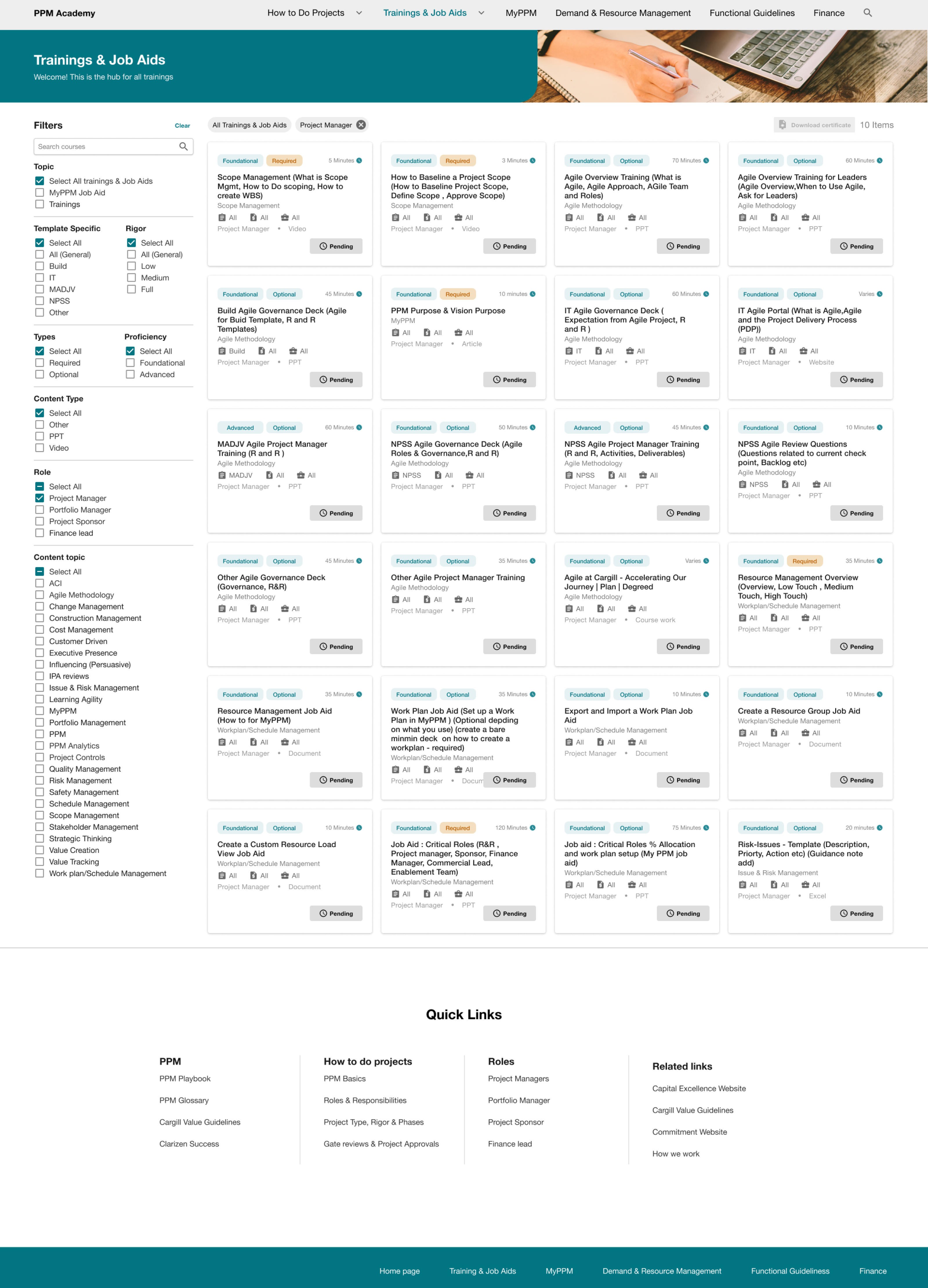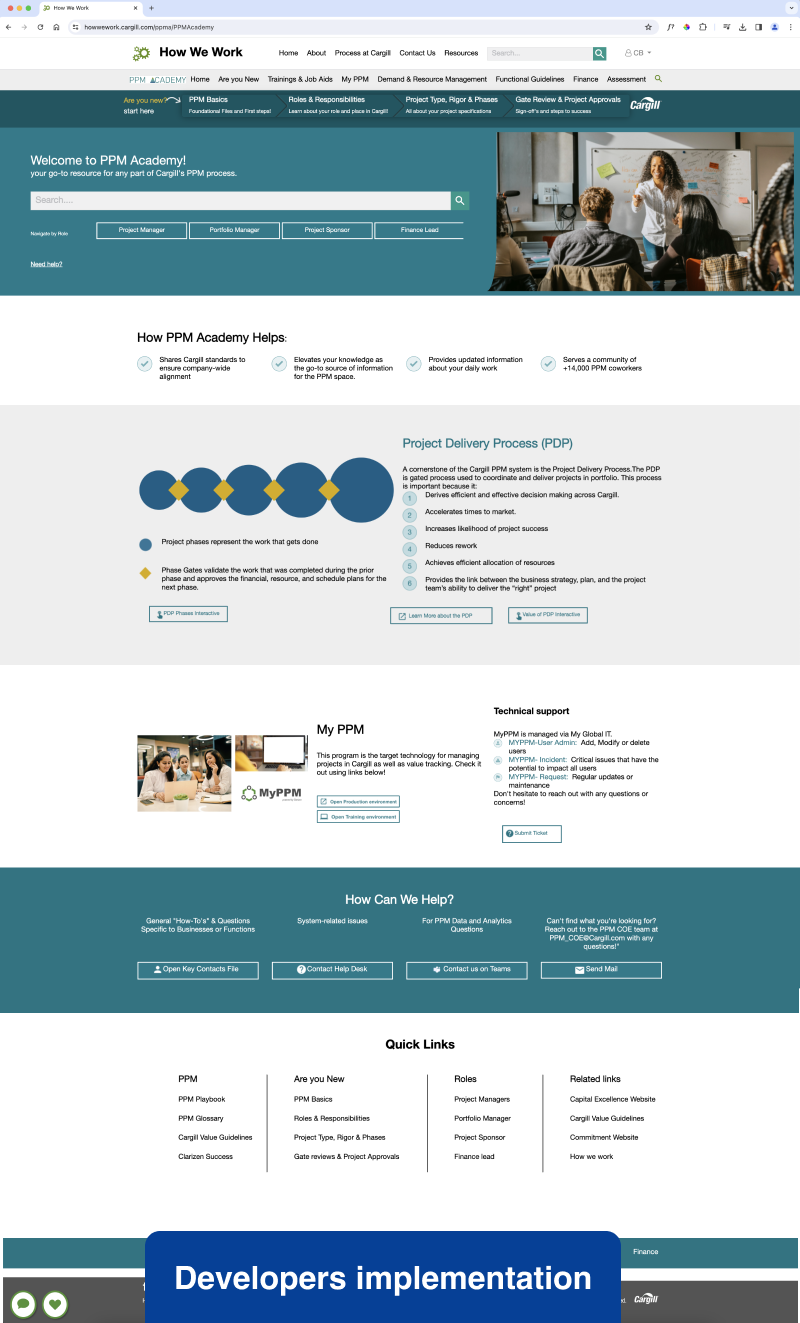 I led the end-to-end UX redesign of Company X’s project management platform, engaging 59 users through research, card sorting, and usability testing. Our goal was to simplify access to tools and training for over 14,000 Project and Portfolio Managers. By uncovering key pain points—like fragmented resources and complex navigation—we restructured the information architecture and designed a role-based, user-friendly experience. The result: a scalable platform that streamlines onboarding, improves daily workflows, and empowers project managers to work more efficiently.